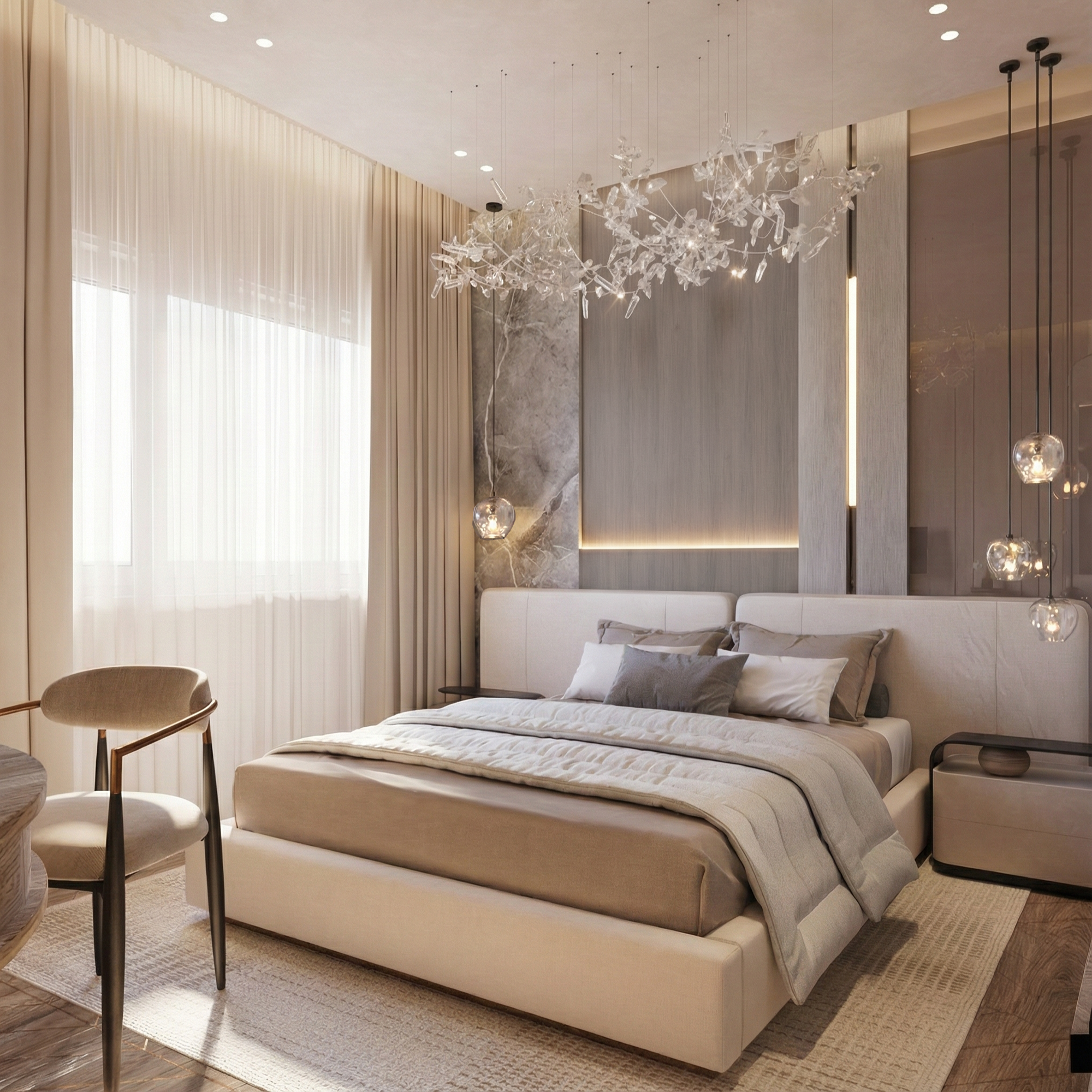 Warm beige and muted tones enhance natural light and create a welcoming, timeless atmosphere that feels both relaxing and refined.